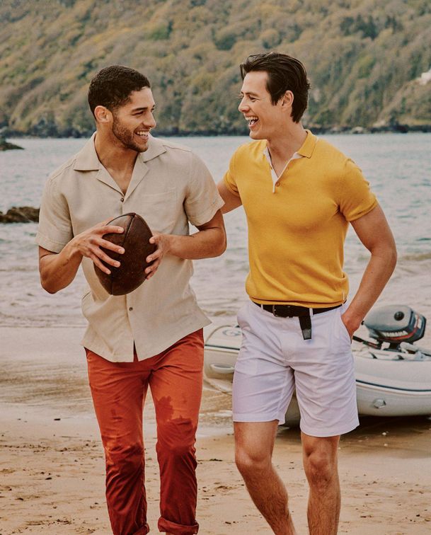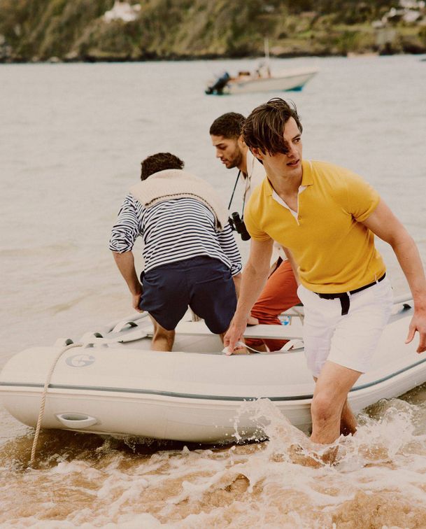 Picture 1: Adam wears CONNOLLY JUMPER, £350, connollyengland.com. Picture 2: DJ wears ORLEBAR BROWN TROUSERS, £175, orlebarbrown.com; FRESCOBOL CARIOCA SHIRT, £175, frescobolcarioca.com. Picture 3: Harry wears ORLEBAR BROWN POLO SHIRT, £295, orlebarbrown.com; ANDERSON’S BELT, £90, matchesfashion.com. Picture 4: Adam wears HEMINGSWORTH SWEATSHIRT, £99, hemingsworth.com; GANT SHORTS, £70, gant.co.uk.