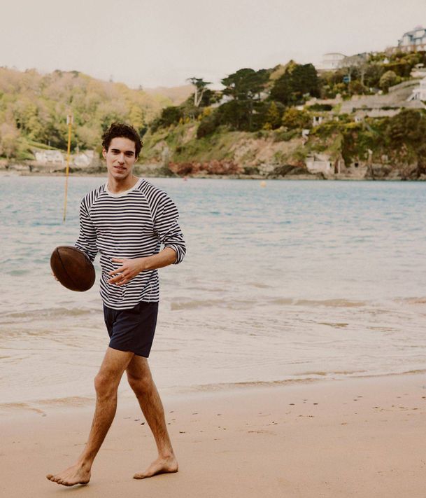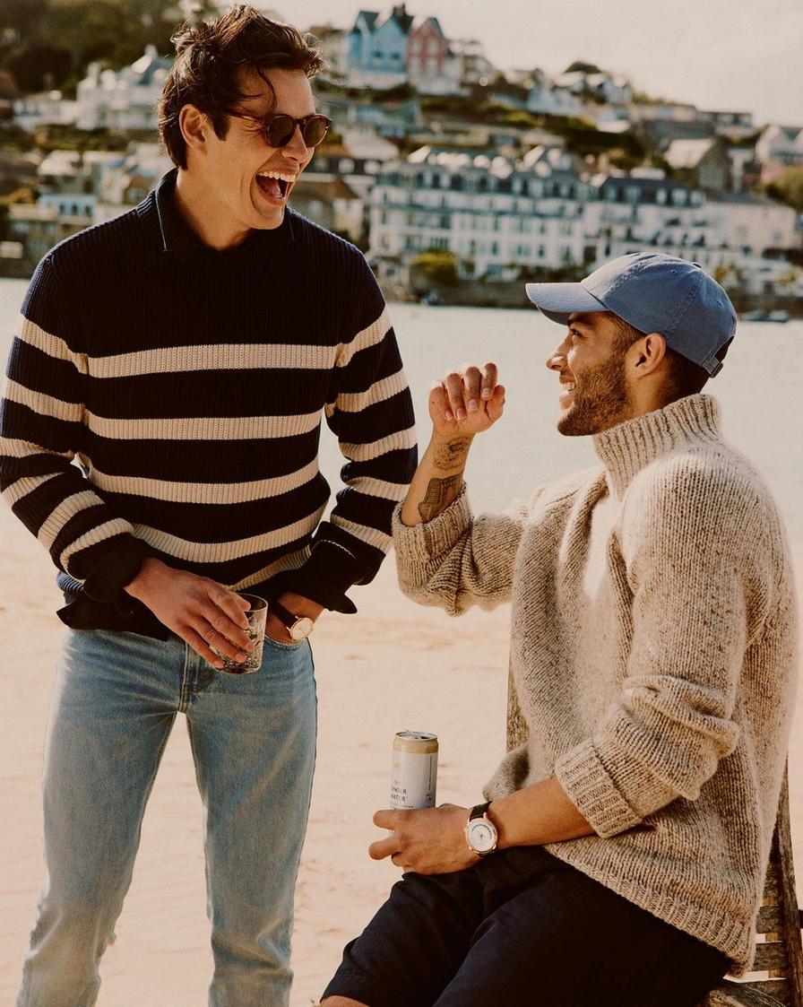 Continuing our voyage into seafaring style — while acknowledging Britain’s cool coastal breezes — we’ve also discovered a range of sweatshirts from Hemingsworth. Most are block, pastel colours. But our favourite? This softly-spun striped option, created in the iconic Breton style.