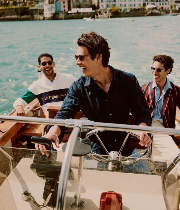 Picture 1: DJ wears GANT RUGBY SHIRT, £125, gant.co.uk; MONC X OLIVER SPENCER SUNGLASSES, £210, monclondon.com; Adam wears SIRPLUS SHIRT, £95, sirplus.co.uk; MR P. TROUSERS, £175, mrporter.com; MONC X OLIVER SPENCER SUNGLASSES, £210, monclondon.com. Picture 2: Harry wears DEREK ROSE LINEN SHIRT, £165, derek-rose.com; SUNGLASSES model’s own