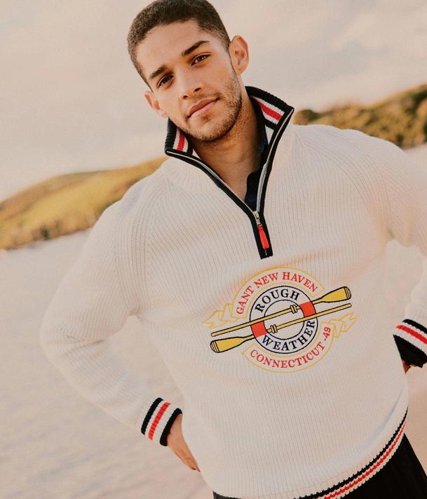 The vintage, academic look is also having something of a resurgence. After several years out of favour, large logos and bold, statement stripes are back in force — with preppy powerhouses Ralph Lauren and Gant leading the sporting charge.