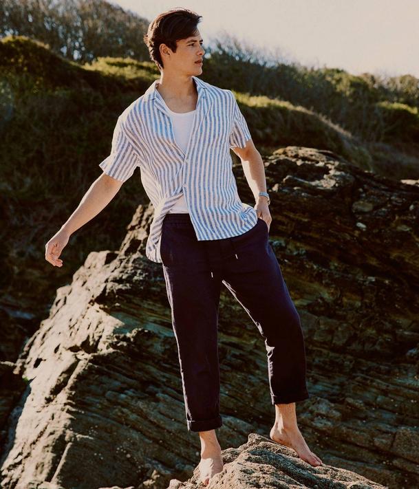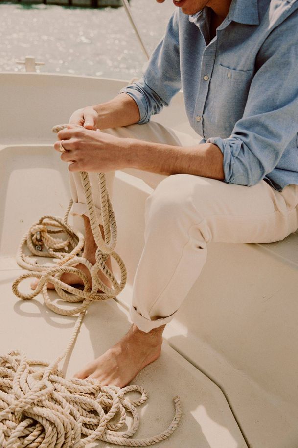 Another brand with British quality and values all buttoned up is Sir Plus. This simple striped shirt from the sustainable brand is a less loud option than the boating jacket above — quieter on the eyes, but still influenced by salt-sprayed maritime stripes.