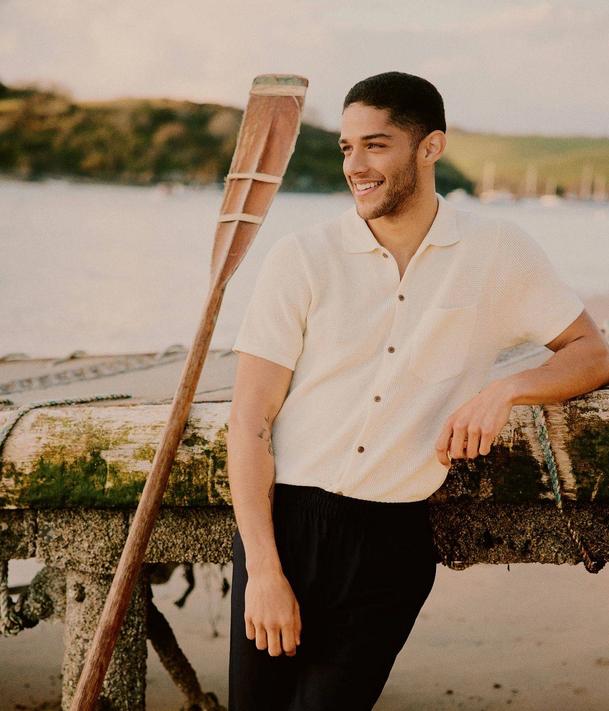 Adam wears OLIVER SPENCER TOP, £129, oliverspencer.co.uk; INCOTEX TROUSERS, £275, slowear.com