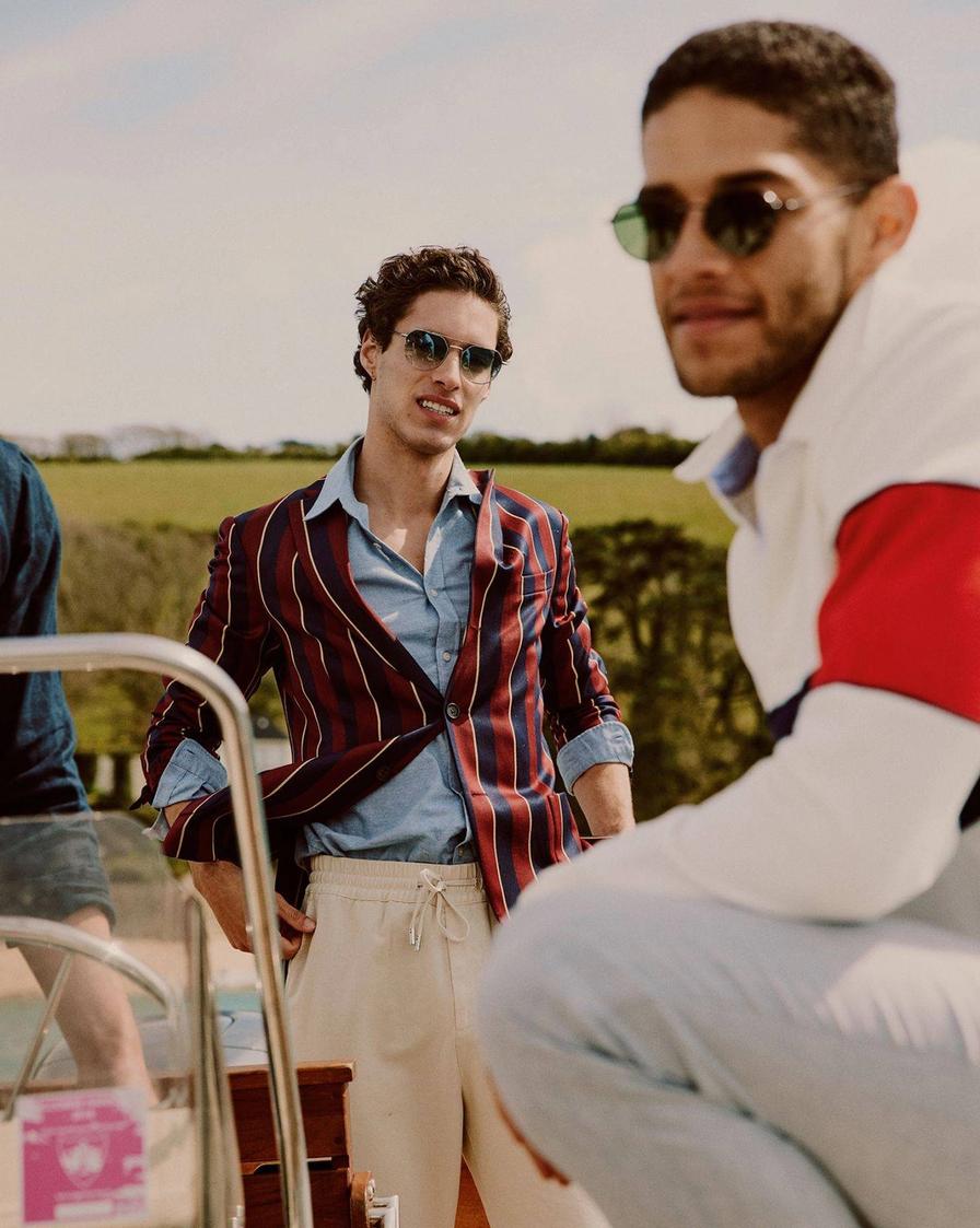 And then there are those bold, signature pieces that tie everything together. Pieces like this extraordinary New & Lingwood boating jacket. Combining the aforementioned nautical influences with preppy style — and then throwing in some bright, British colours for good measure — it’s the epitome of 2021 English summer dressing.