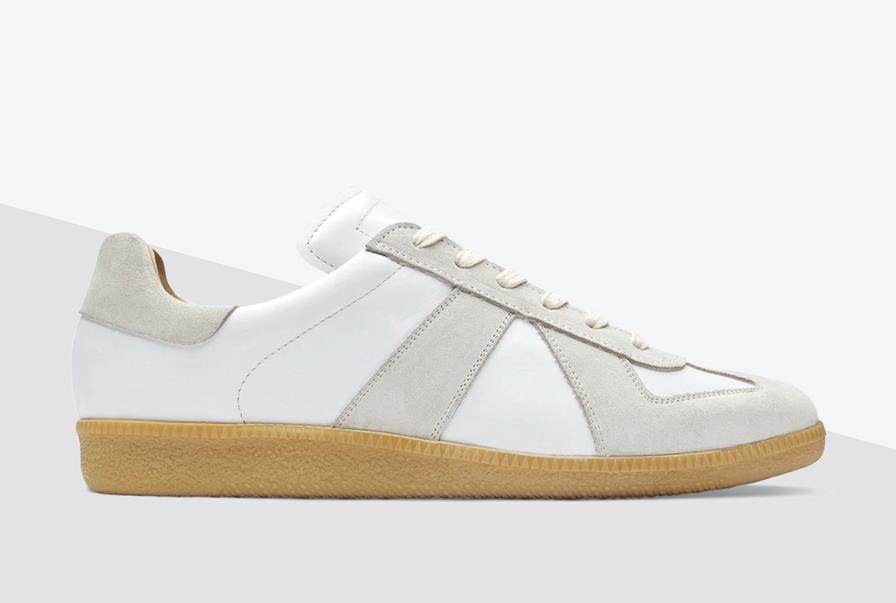 Of course, not every pair of white trainers is going to be walked into a boardroom — or used on a pitch, track or court. Some are crafted purely as style statements. And Oliver Cabell’s GAT design is perfect for conjuring up memories of the eighties. Inspired by vintage German athletic trainers, these sneakers are crafted from a combination of Spanish and Italian leathers, walk on durable rubber soles and are tightly pulled together with wax cotton laces.