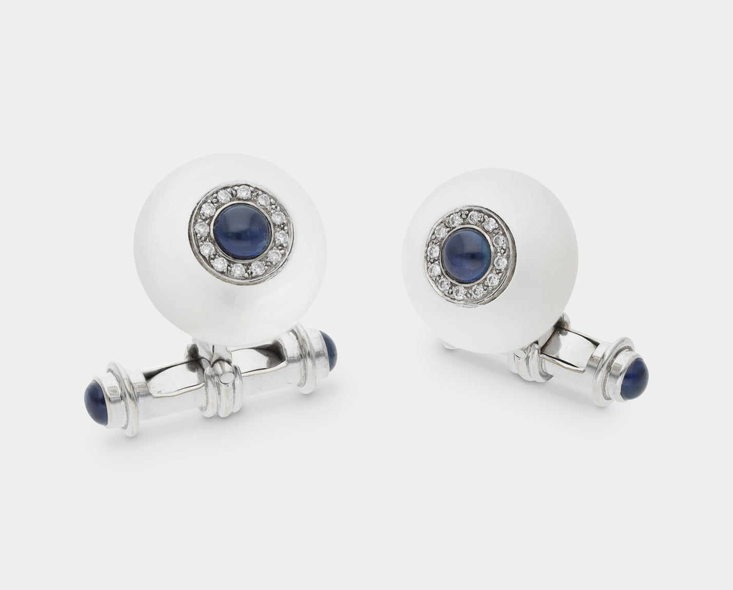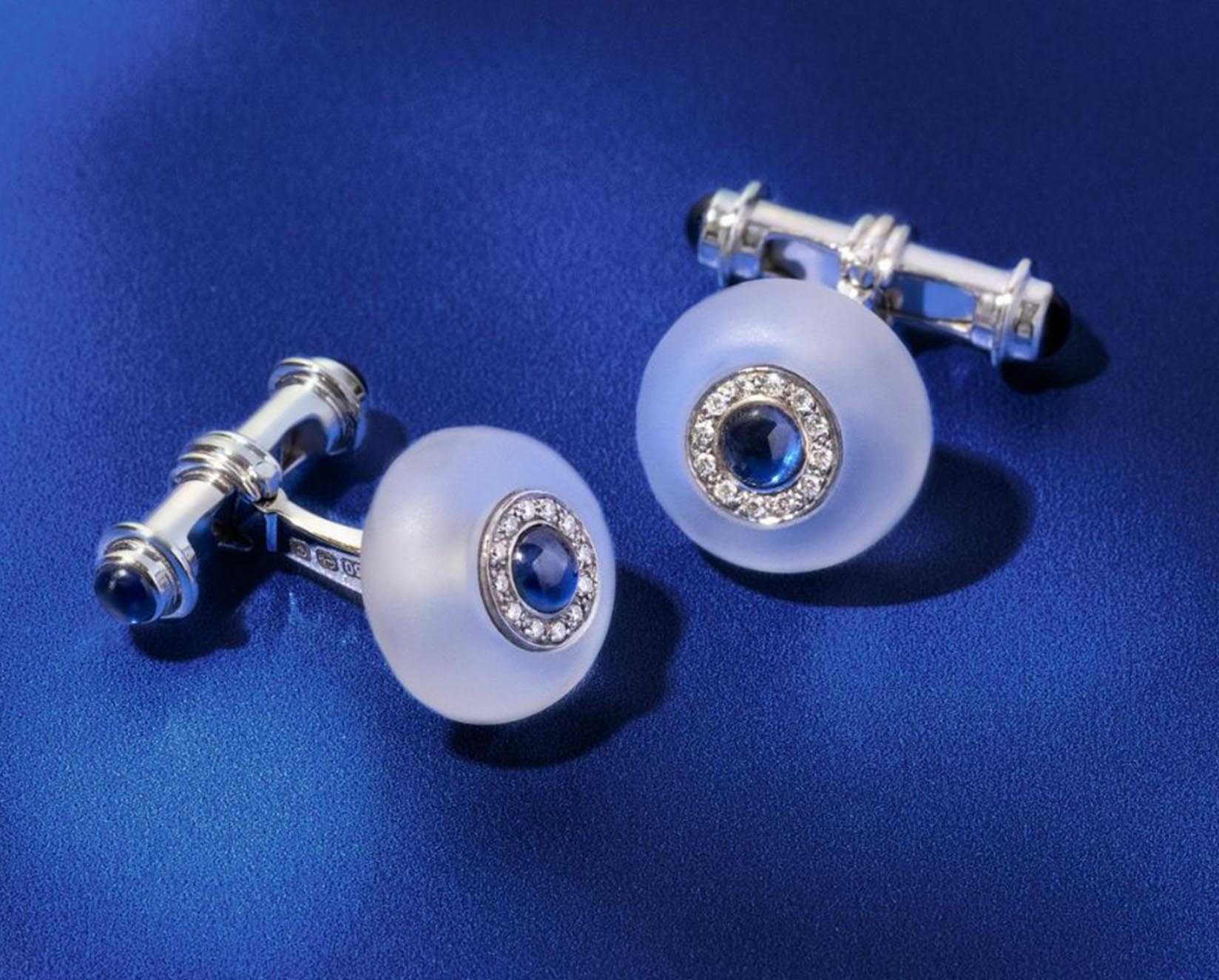 18ct White Gold Cufflinks Rock Crystal, Diamond And Sapphire Cufflinks
