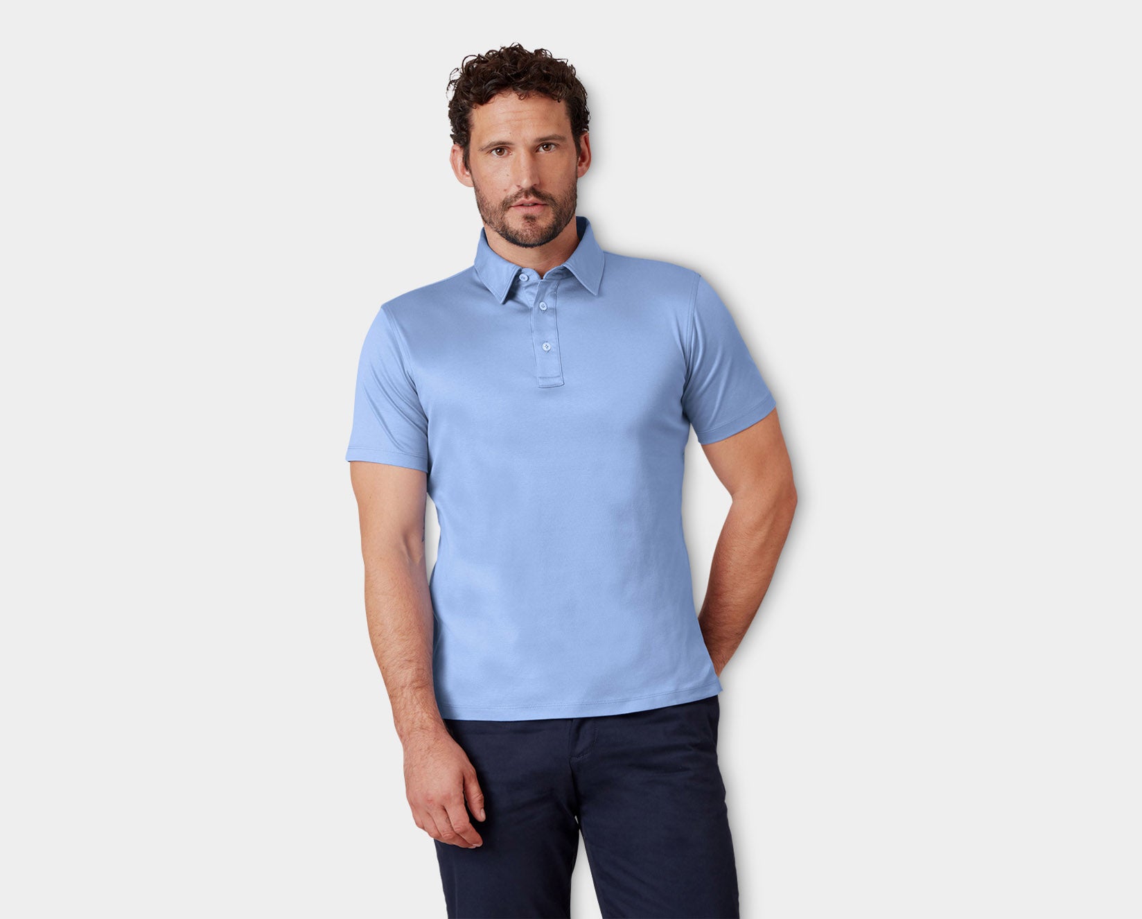 Amalfi Blue Egyptian Cotton Polo Shirt
