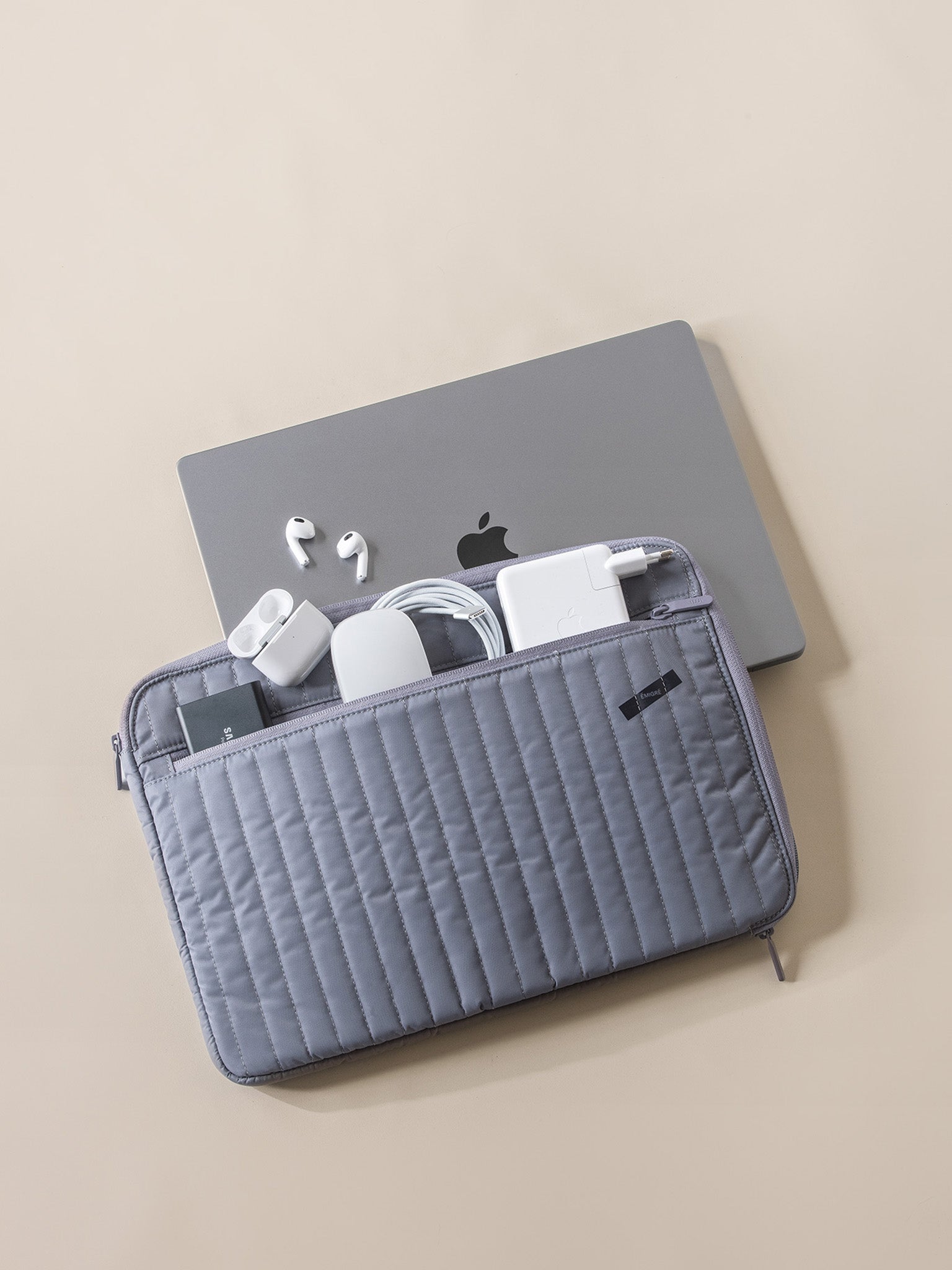 Émigré’s laptop sleeve features a signature stitching pattern along with a plush and protective lining. Sized for 13” and 16” laptops with a generous zippered front pocket for small accessories. Made to fit inside all the bags in the Émigré collection, or carried alone for a quick bit of work over coffee.