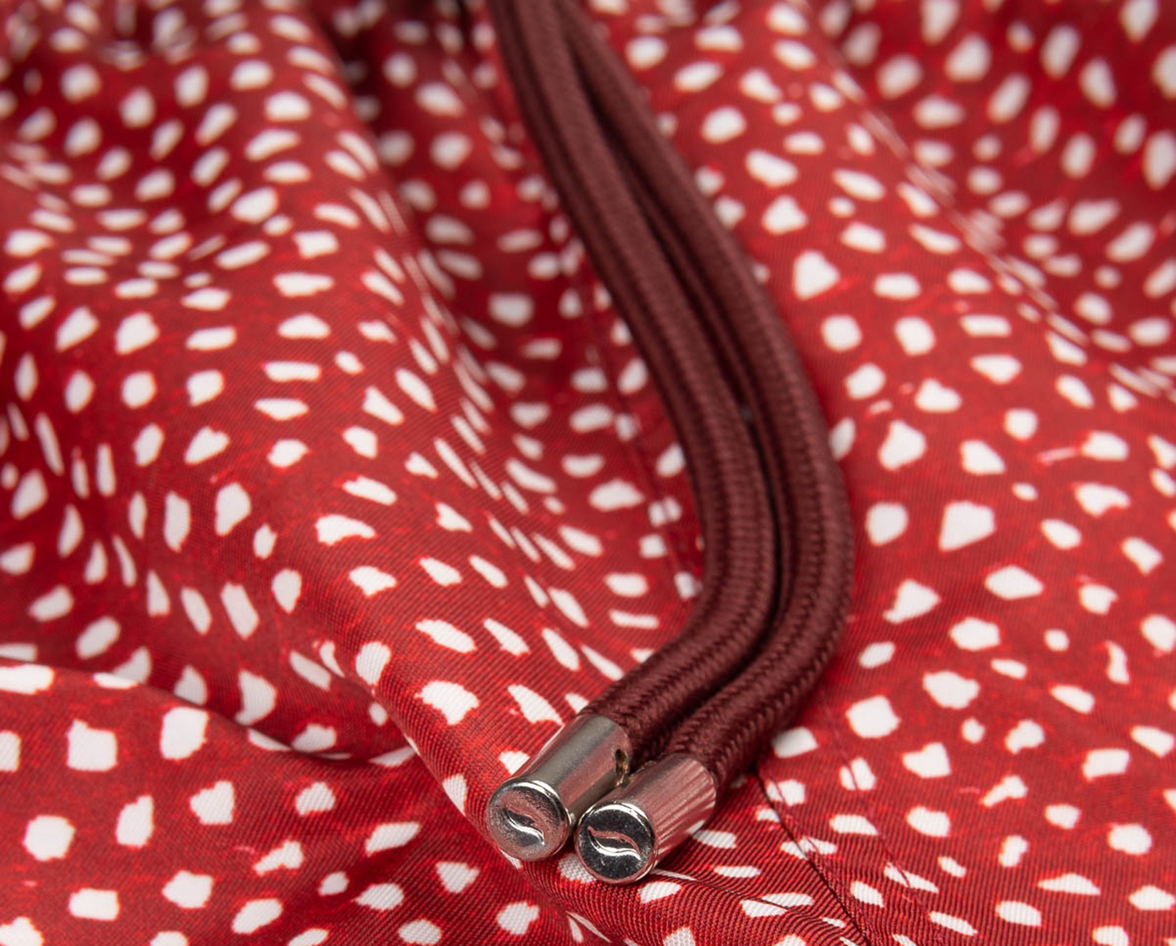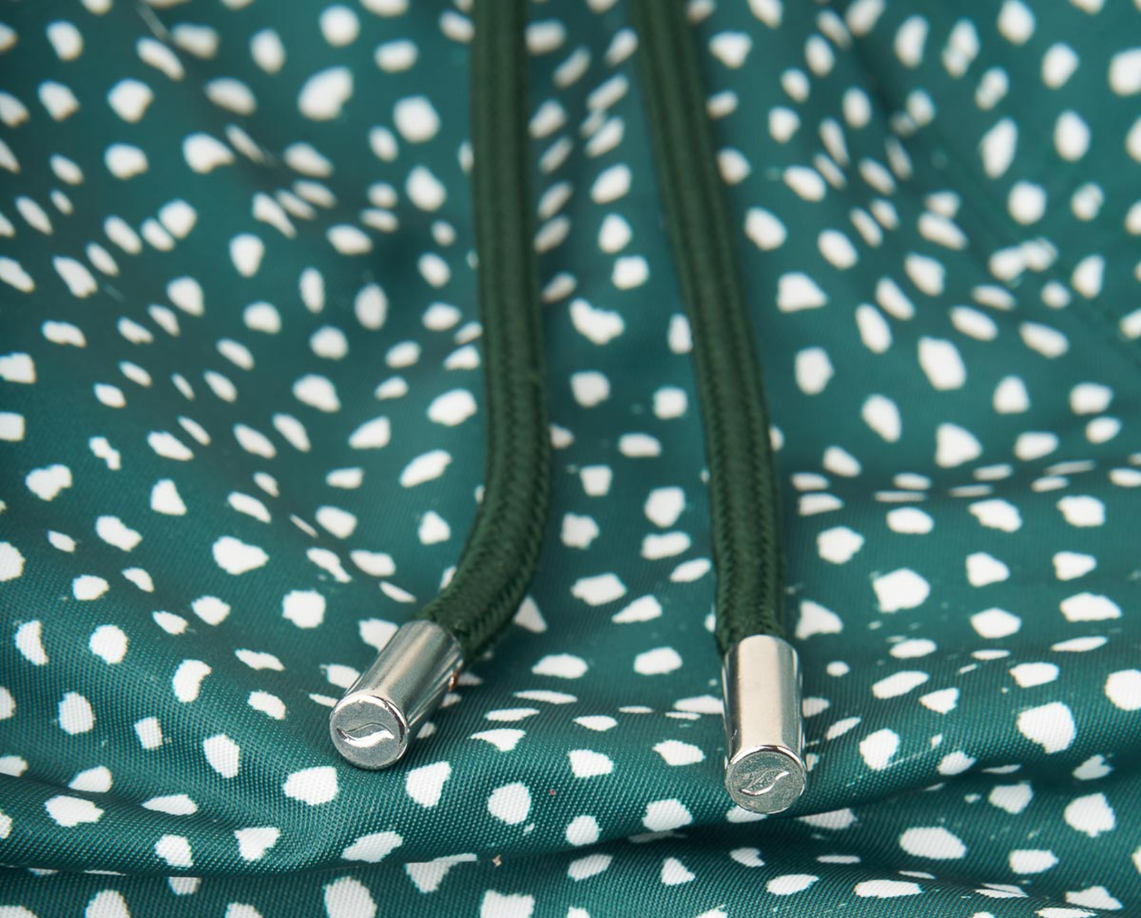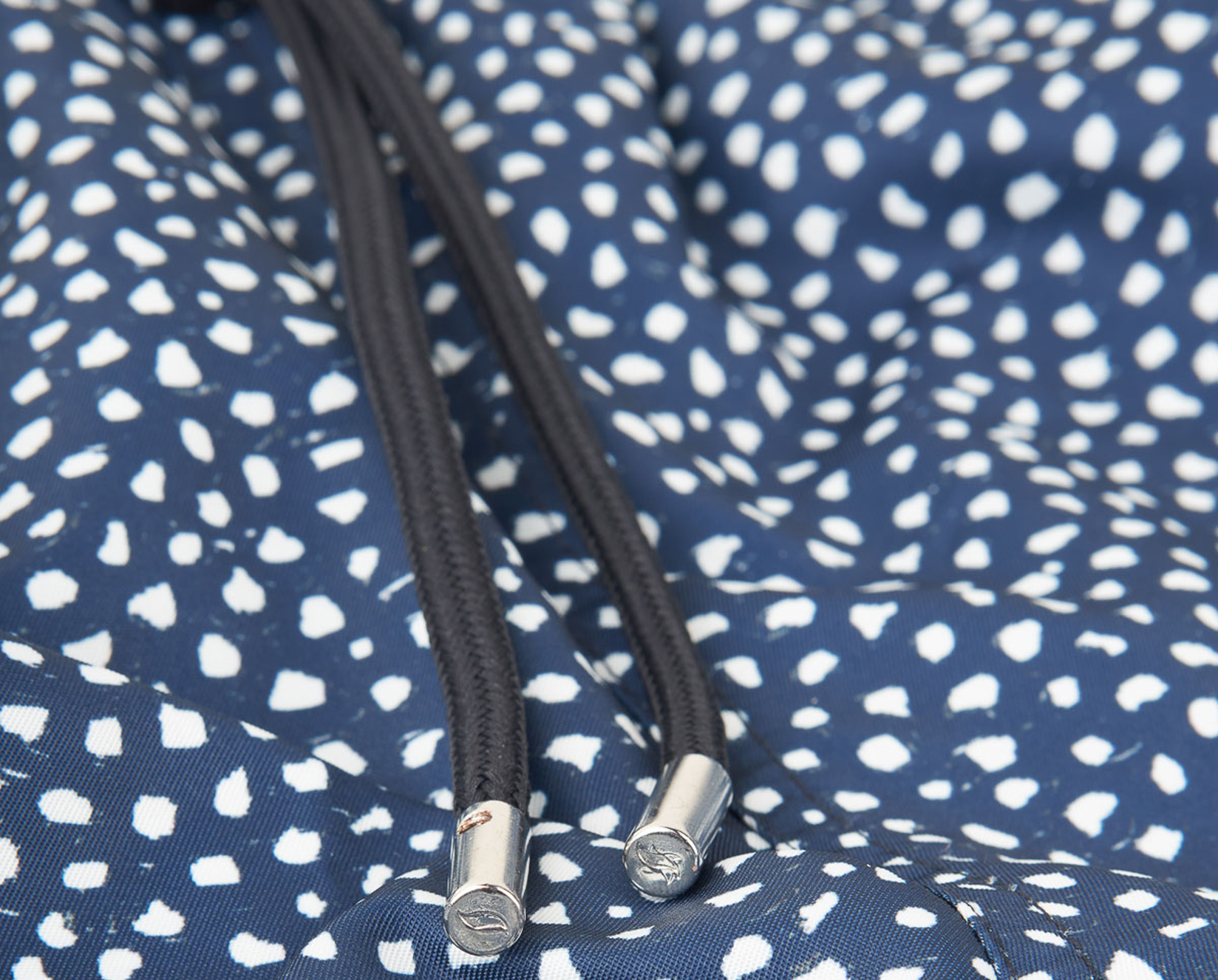 - Matching drawstring with brushed metal end caps and logo
