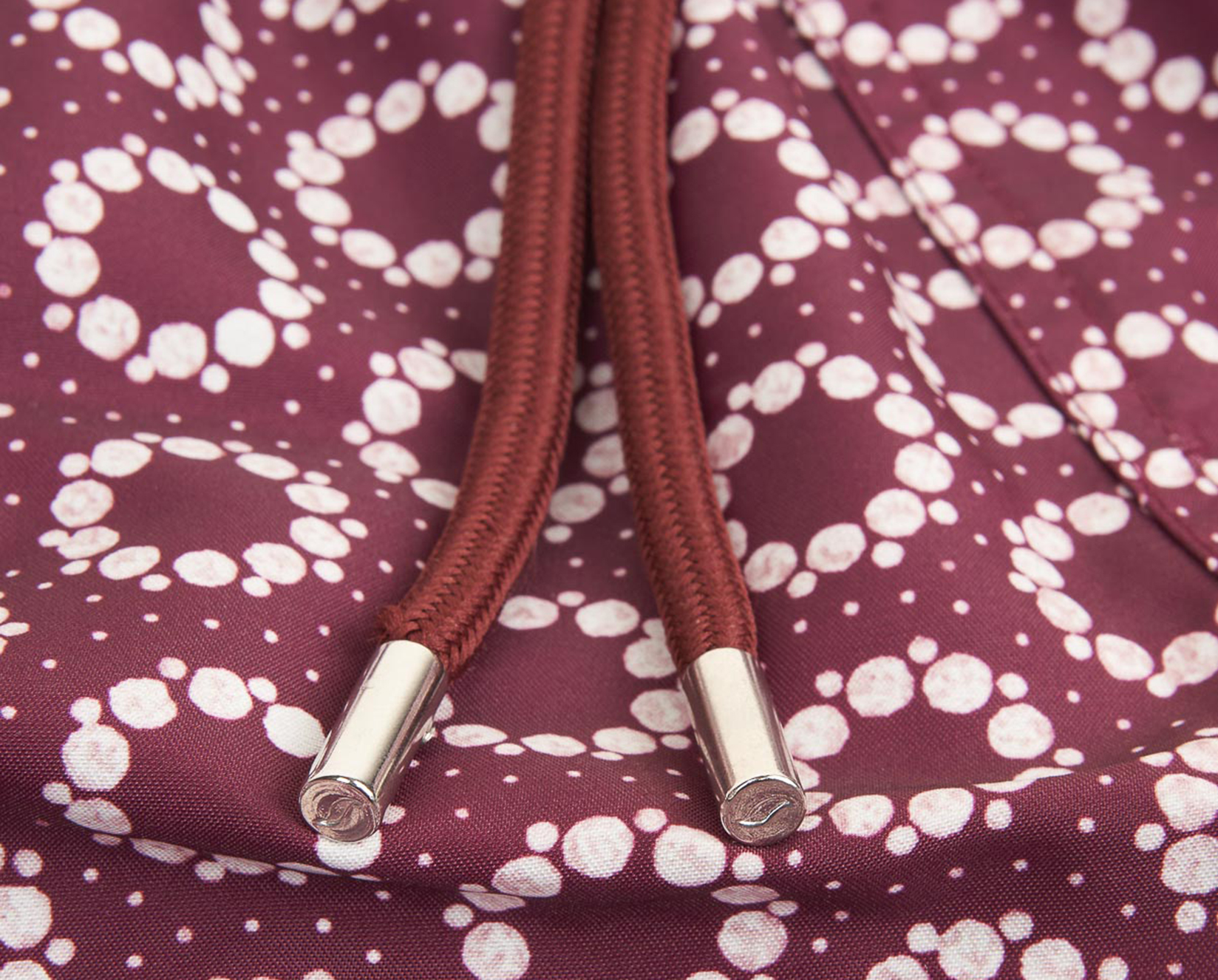 - Matching drawstring with brushed metal end caps and logo