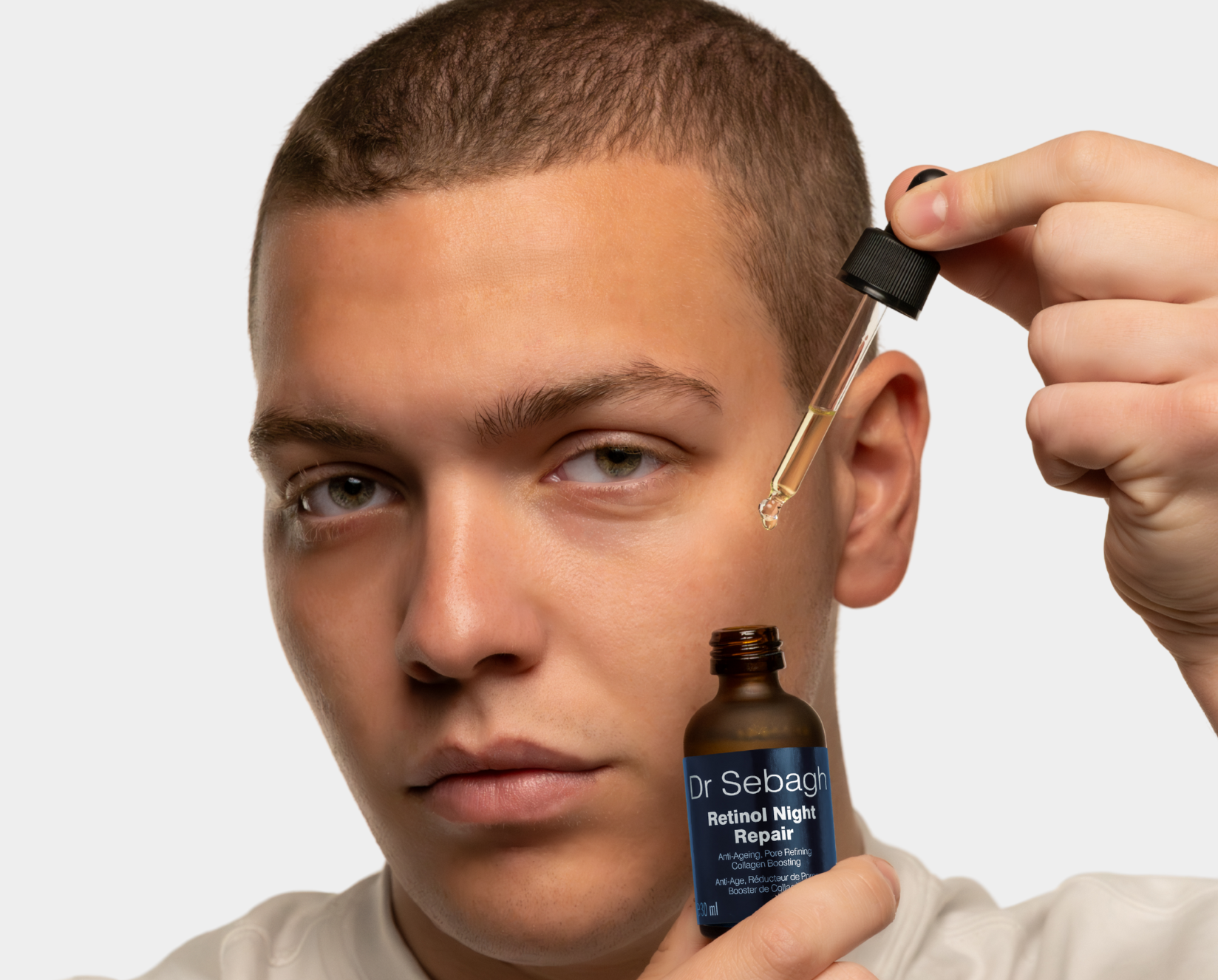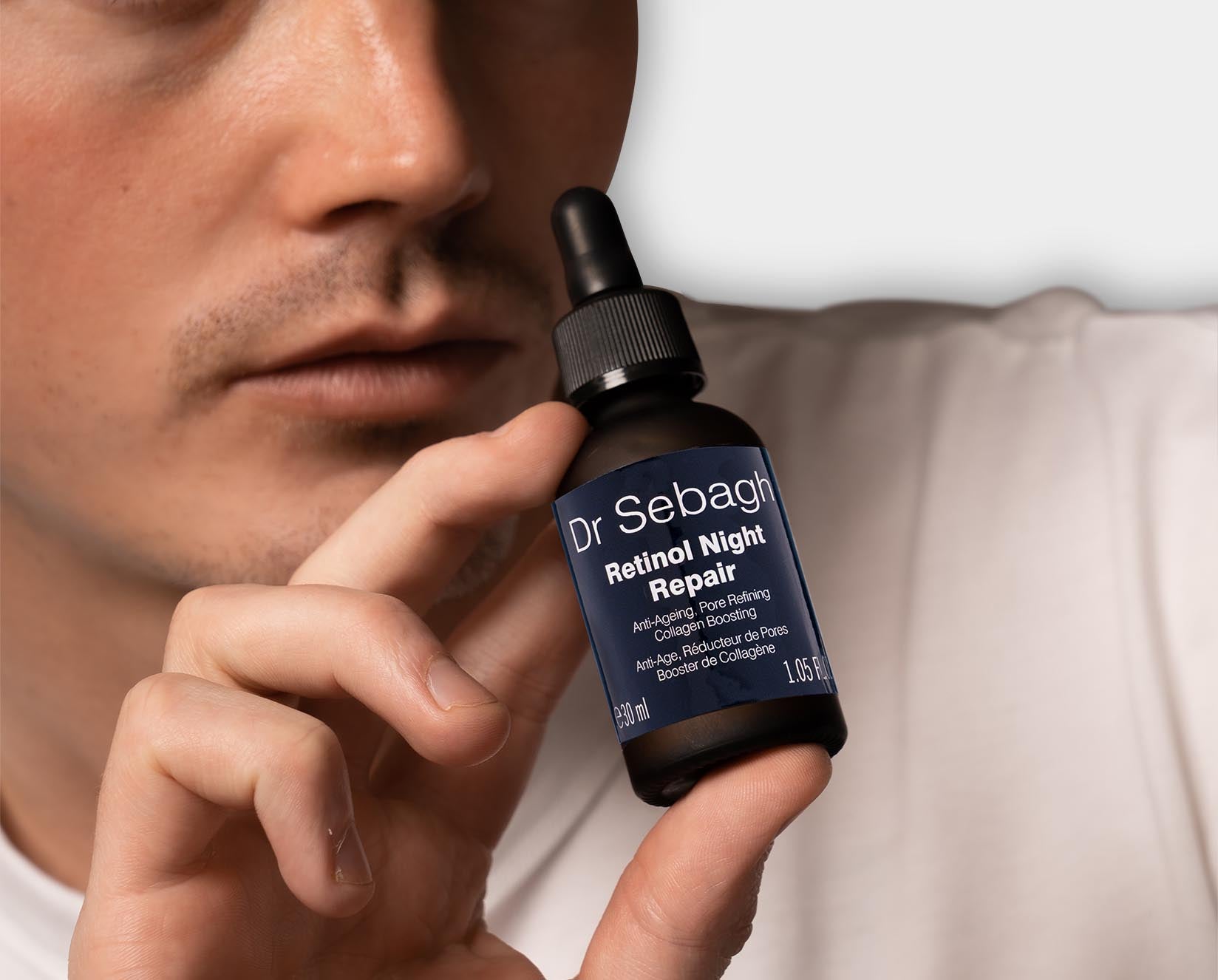 - Apply a small amount of Dr Sebagh Retinol Night Repair to perfectly cleansed skin