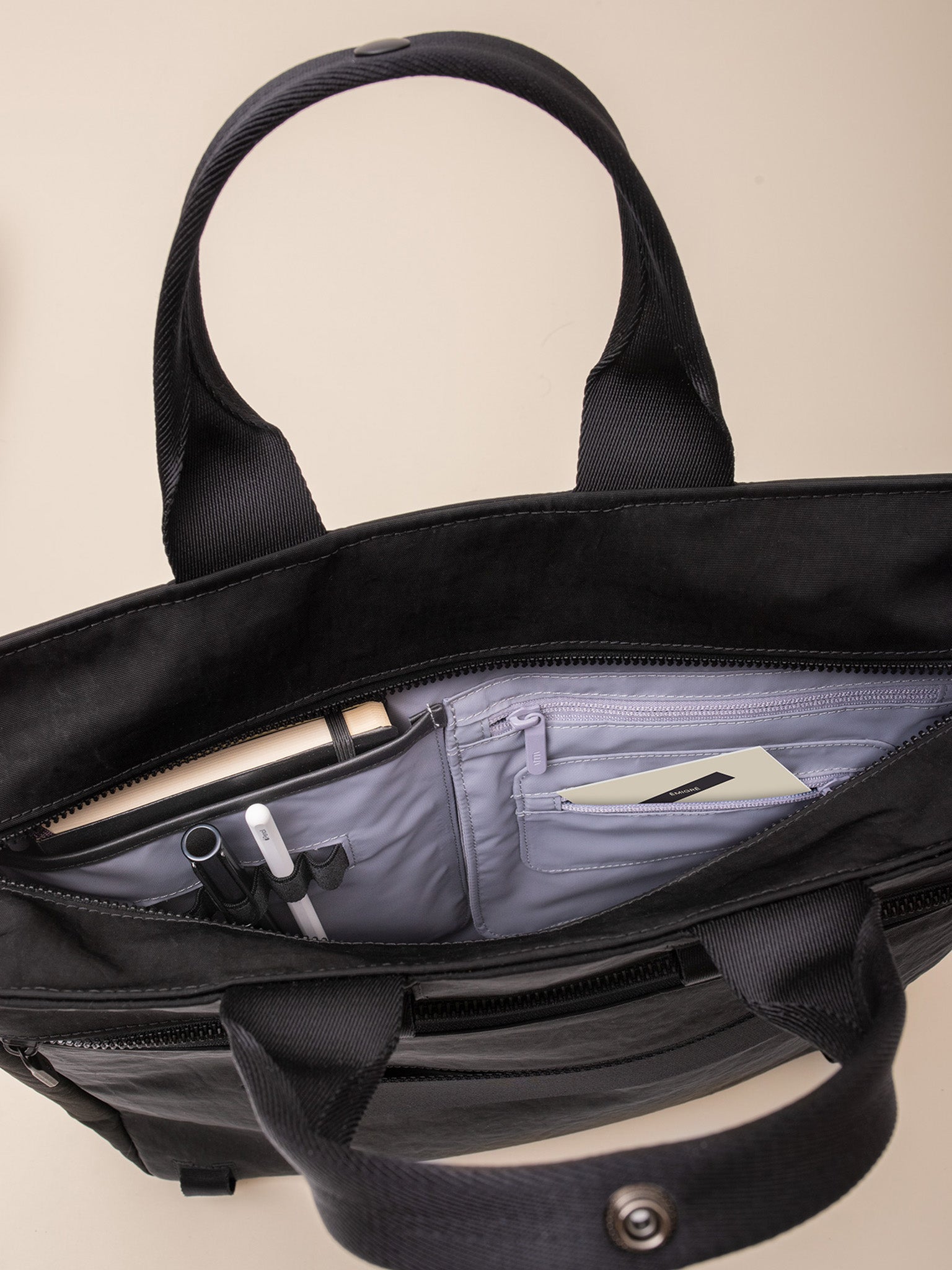 The Émigré Tote Bag is a chameleon: a clever carry-all, a trusted document holder, a daily commute companion; it takes you through your workday and beyond. A slim and elegant silhouette coupled with smart internal organisation makes this Tote Bag the ideal balance of function and style.