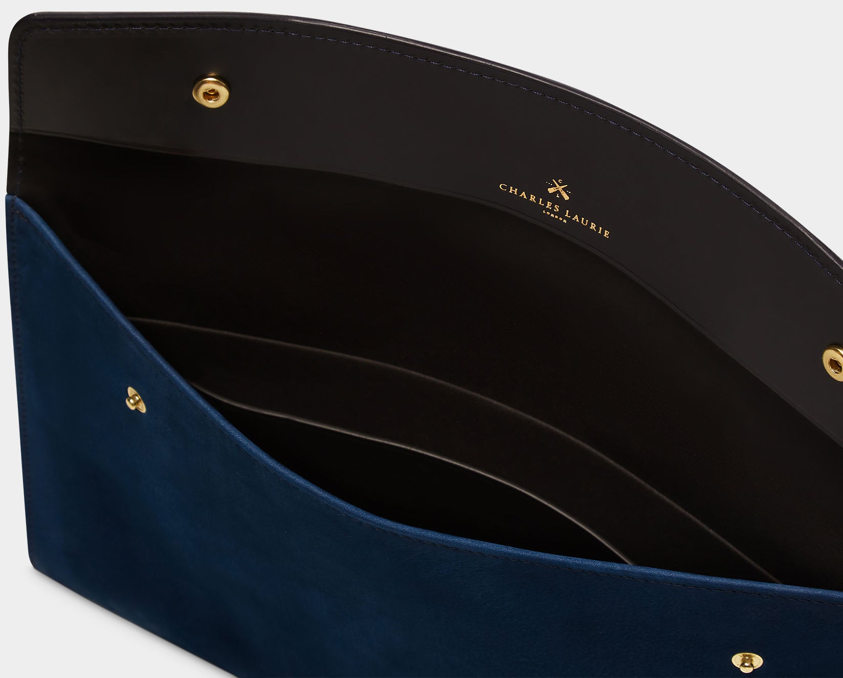 - Interior components: x 1 Laptop pocket (can fit 15 inch) and x 1 flat phone pocket, brass poppers to close