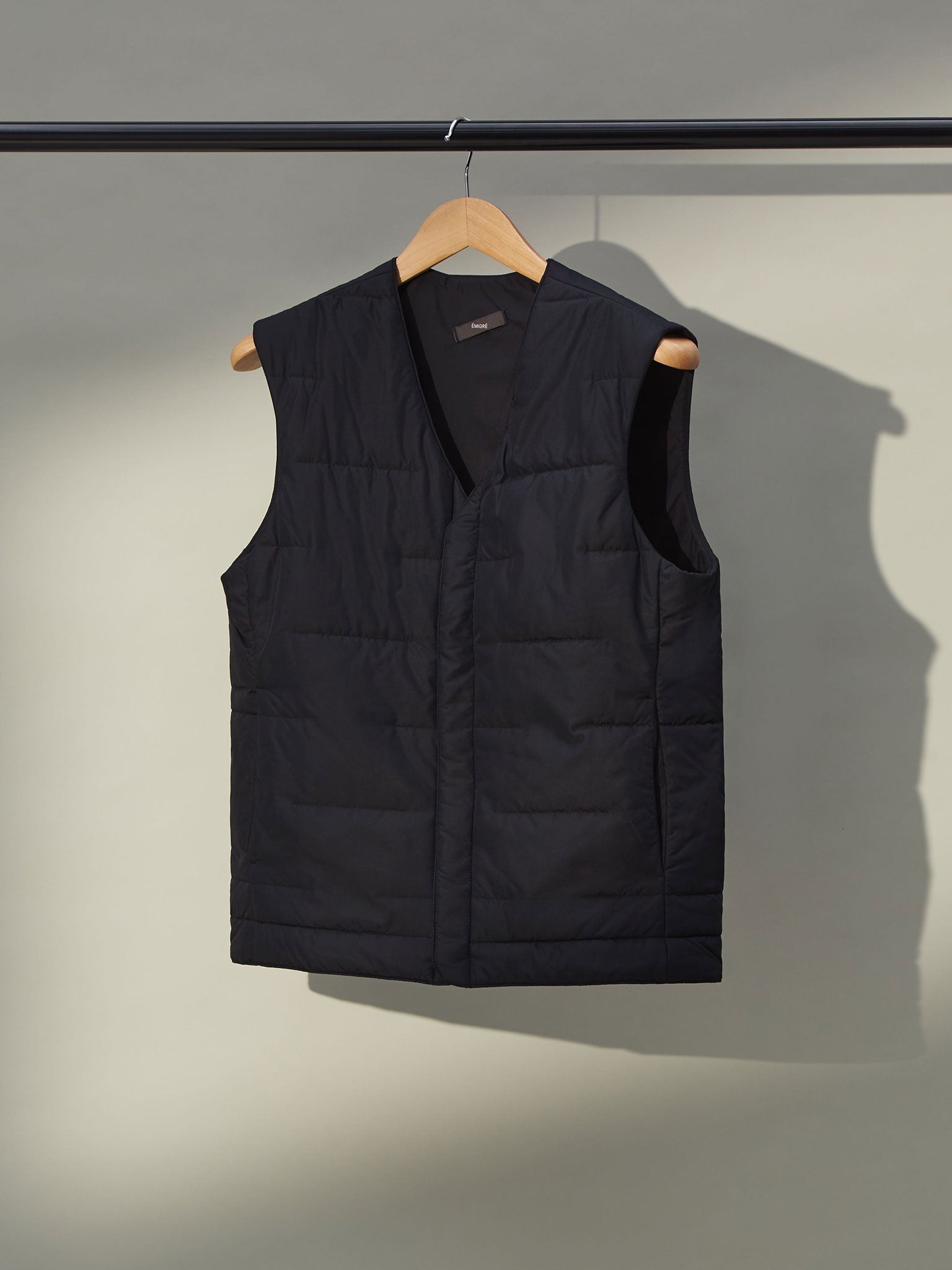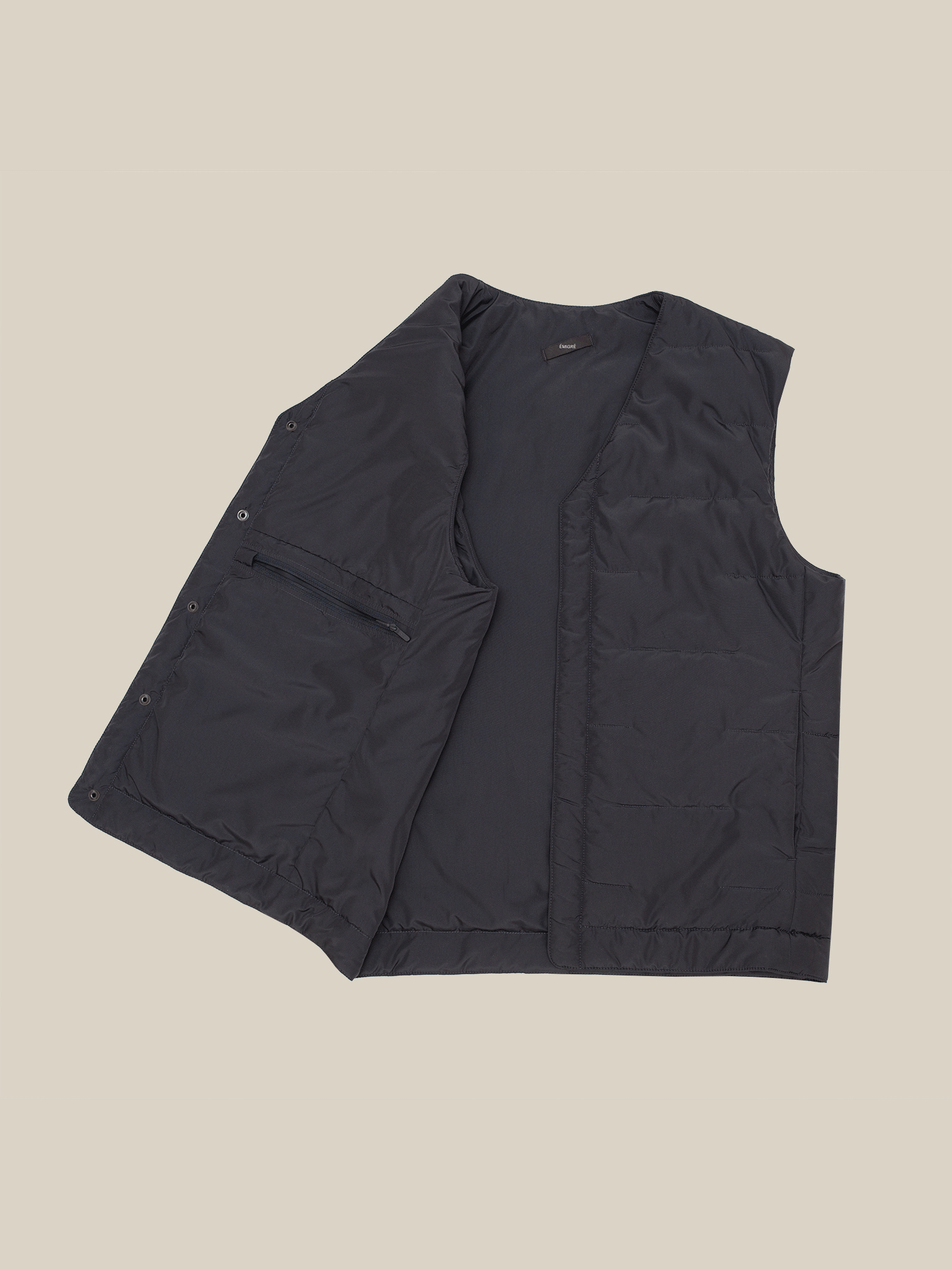 A trim and stylish mid-layer designed to wear under a blazer, the Émigré Thermal Travel Gilet is your perfect is your perfect work and travel companion. Featuring insulation made from recycled PET bottles, and a sophisticated matte finish made from 100% recycled materials. Packs neatly into its own self-contained bag.